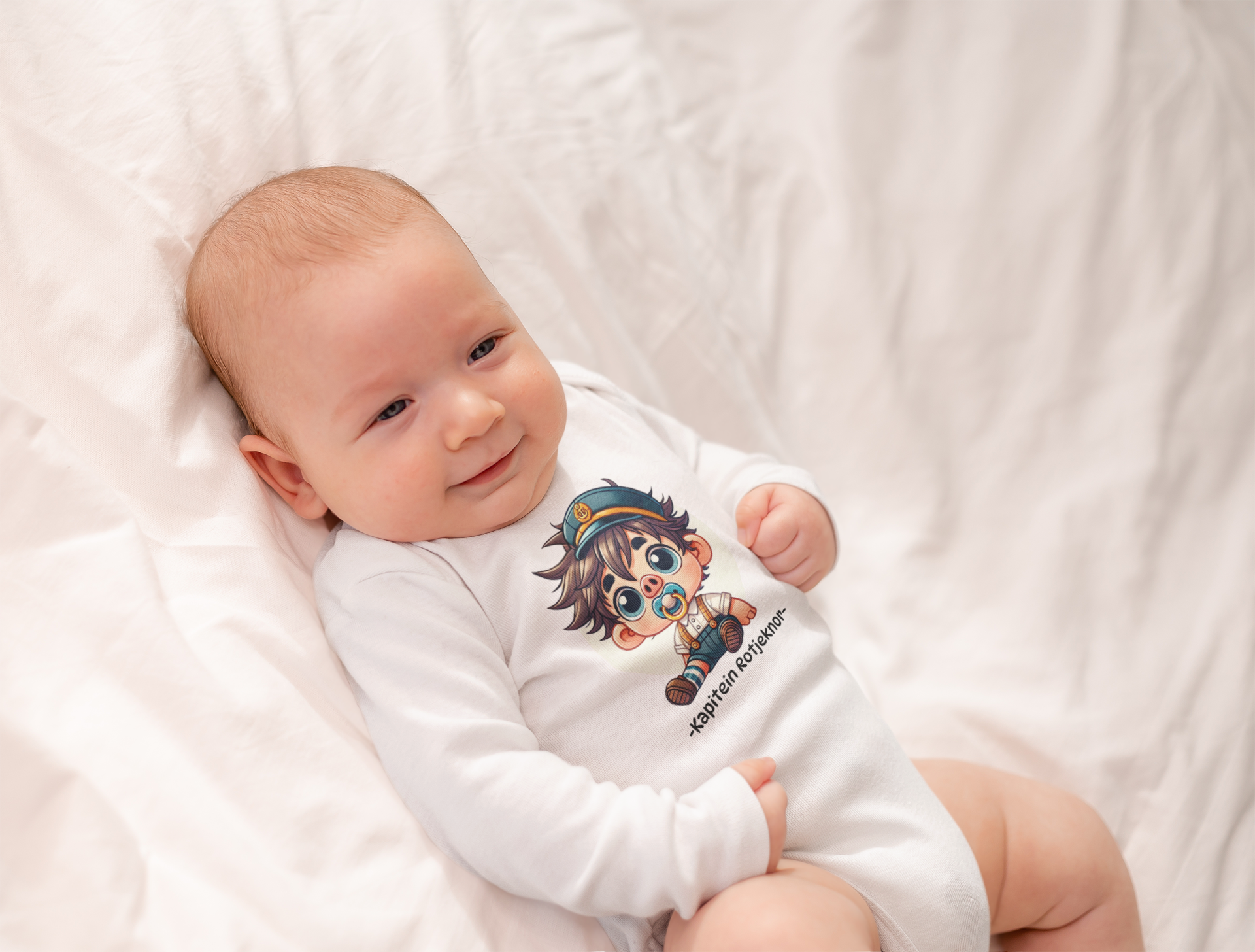 Dit Kapitein Rotjeknor-rompertje is het ideale kraamcadeau of een leuke toevoeging aan de garderobe van je kleine zeeman. Comfort en Rotterdamse flair komen samen in dit unieke ontwerp.