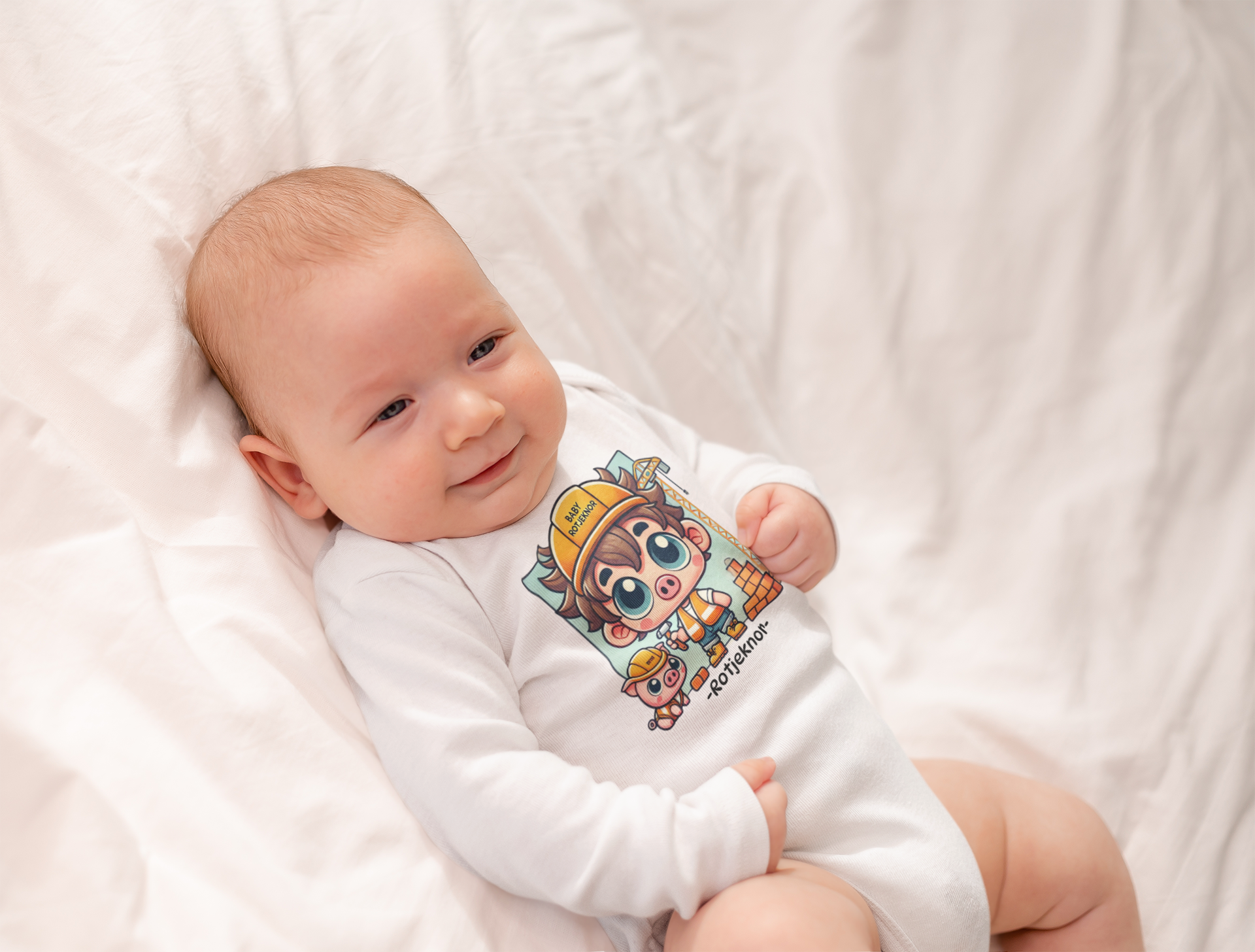 Het Rotjeknor als Bouwvakker-rompertje is een geweldige keuze voor een uniek kraamcadeau of om je baby een speelse, Rotterdamse touch te geven. Combineer comfort en kwaliteit met een knipoog naar de Rotterdamse werkmentaliteit.